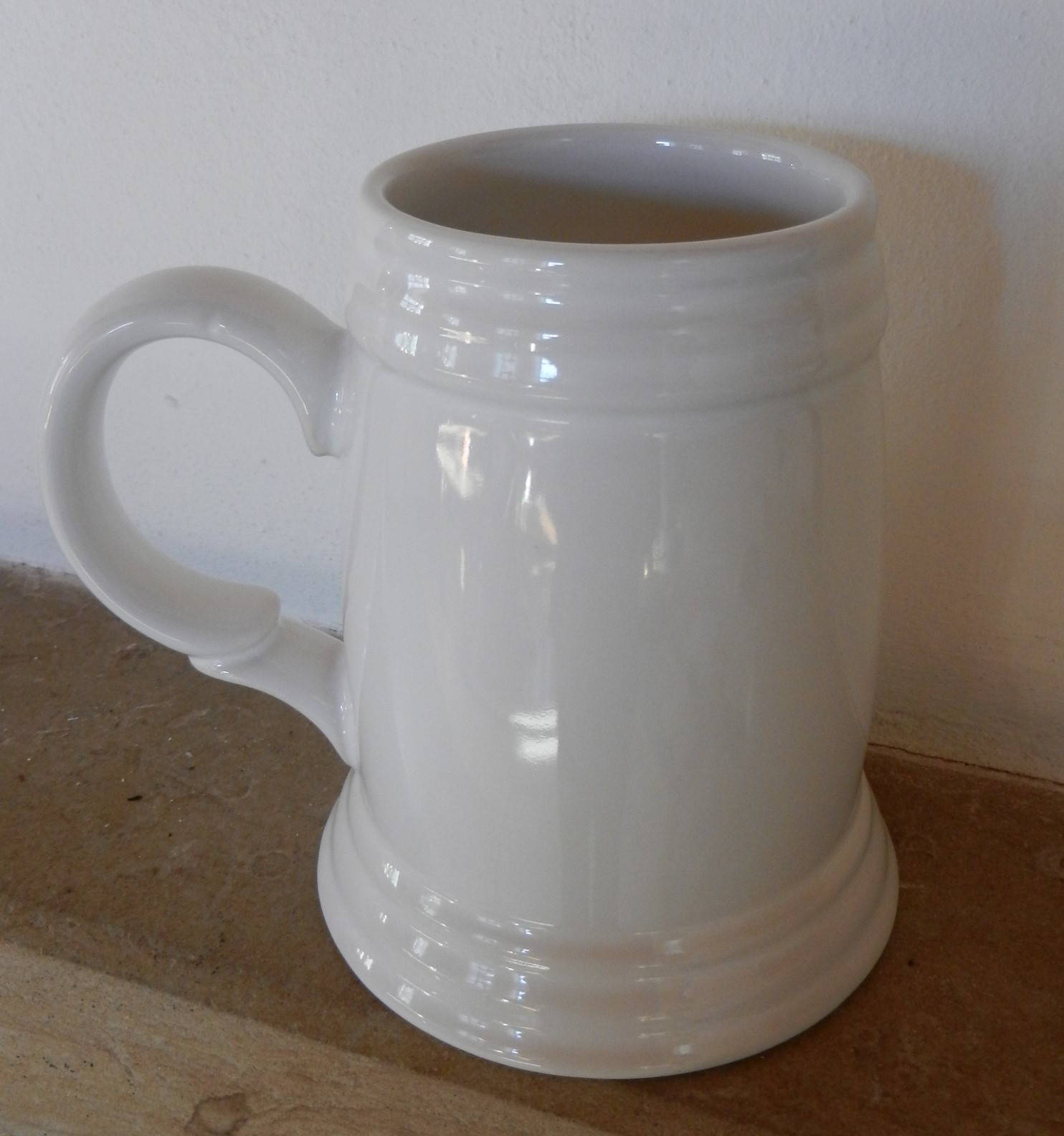 Bílý keramický krýgl udrží pivo pěkně studené mnohem delší dobu než obyčejná sklenice.